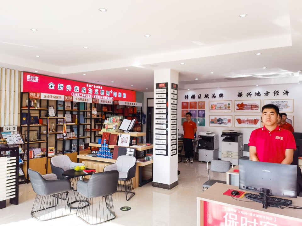 河北保时客门店提供“设计-制作-推广”全链路服务,甚至为乡村特产设计智慧包装物,帮助客户打通产销链路。关键点:深入挖掘客户行业需求,用案例沙盘、扫码体验等直观展示服务价值。